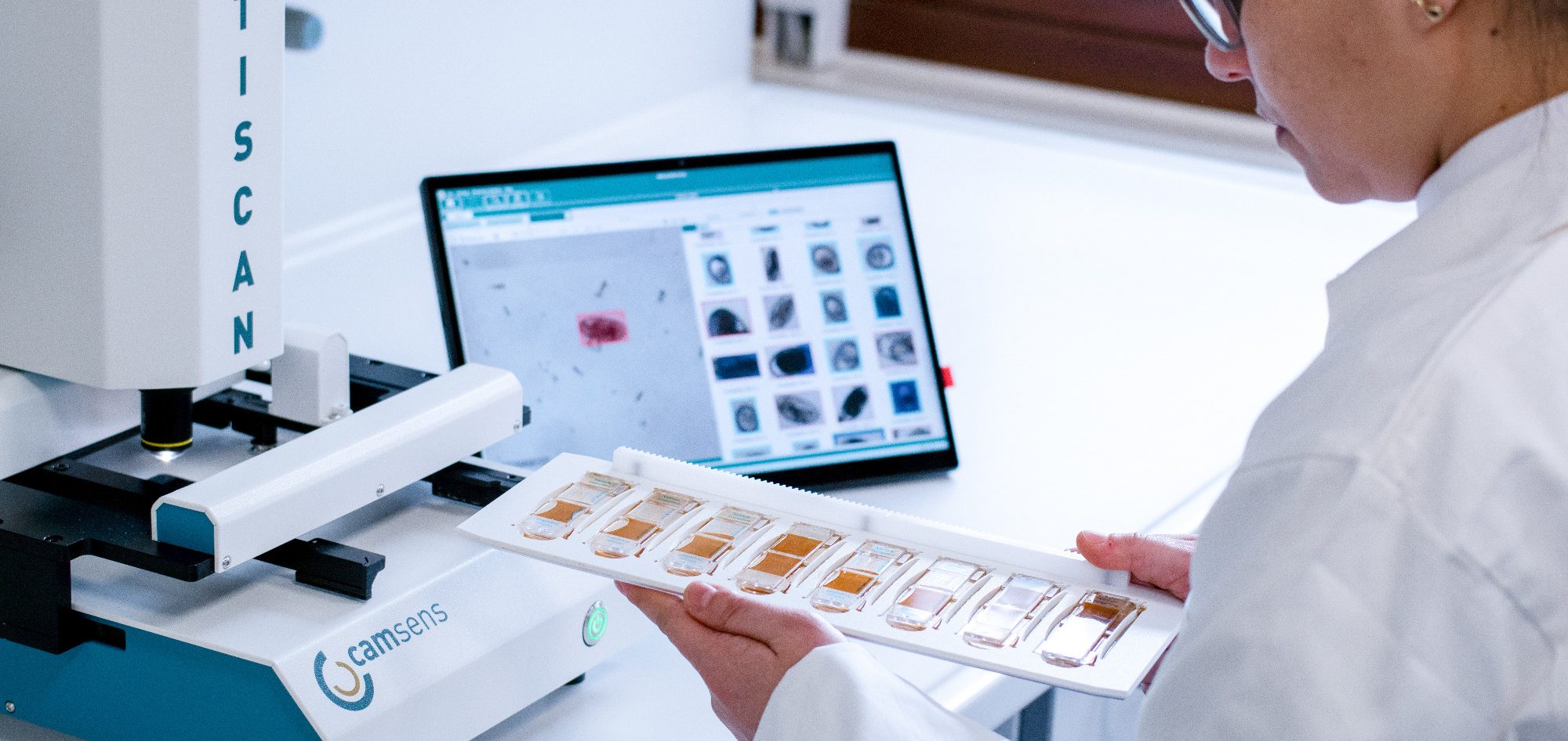 Das Multiscan-System ist eine automatisierte, KI-gestützte Mikroskopieplattform für die Routinediagnostik, die mehrere Objektträgerformate unterstützt. Es vereint Hardware, Software und digitale KI-gestützte Analyse in einem integrierten System. Dadurch unterstützt Multiscan standardisierte, effiziente und nachvollziehbare Arbeitsabläufe bei der Erfassung und Auswertung mikroskopischer Proben.