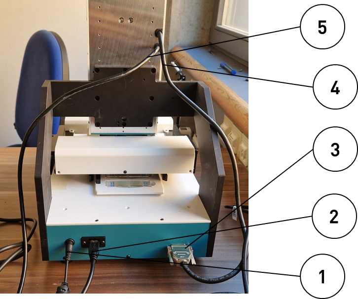 Das Netzkabel ist mit der dafür vorgesehenen Buchse auf der Rückseite des Geräts zu verbinden und anschließend an die Stromversorgung anzuschließen. Die beiden USB-Kabel für Kamera und Gerät sind mit dem mitgelieferten USB-C-Hub zu verbinden. Der Hub ist anschließend an den dafür vorgesehenen USB-C-Anschluss auf der Rückseite des Laptops anzuschließen. Nur dieser Anschluss gewährleistet die für die Kamerafunktion erforderliche Datenübertragungsrate.