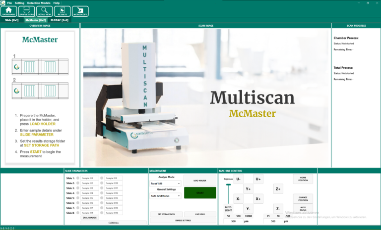 Das Multiscan-System unterstützt die automatisierte Erfassung verschiedener Objektträgerformate. Dazu gehören unter anderem Standard-Objektträger, McMaster-Kammern und Mini-FLOTAC-Systeme. Welche Formate im jeweiligen Anwendungsfall verwendet werden können, richtet sich nach der vorgesehenen Analyse, dem verwendeten Probenhalter sowie der eingesetzten Softwarekonfiguration.
